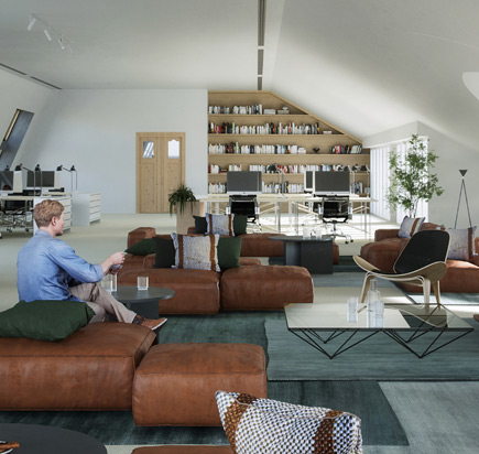 Hohe Decken, große Fenster, Parkett und Teppich schaffen ein Raumerlebnis, das inspiriert und motiviert. Modernste Technik und eine hervorragende Konnektivität sichern zusätzlich ein komfortables, unkompliziertes Arbeiten an jedem Platz.