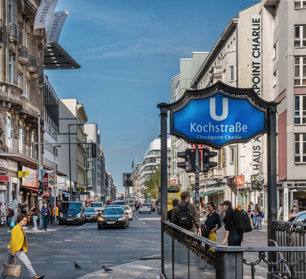 Checkpoint Charlie, Gendarmenmarkt, Axel Springer Campus – rund um die südliche Friedrichstraße zeigt sich Berlin von seiner lebendigsten Seite.